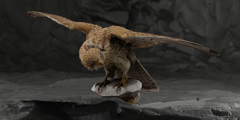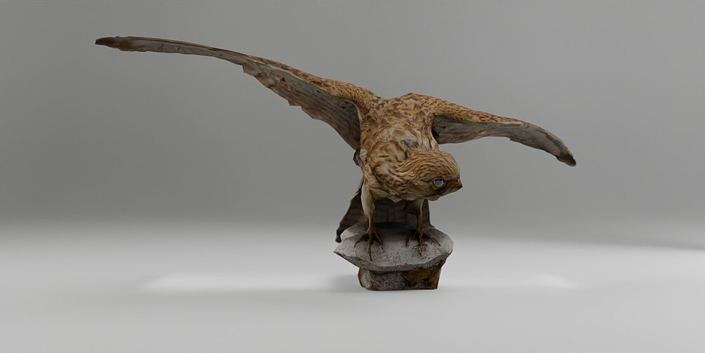 This asset includes a photorealistic female kestrel bird for use in VFX, Games and 3D environments. The kestrel is a stuffed sample of his bird species and was photo scanned with attention for detail.